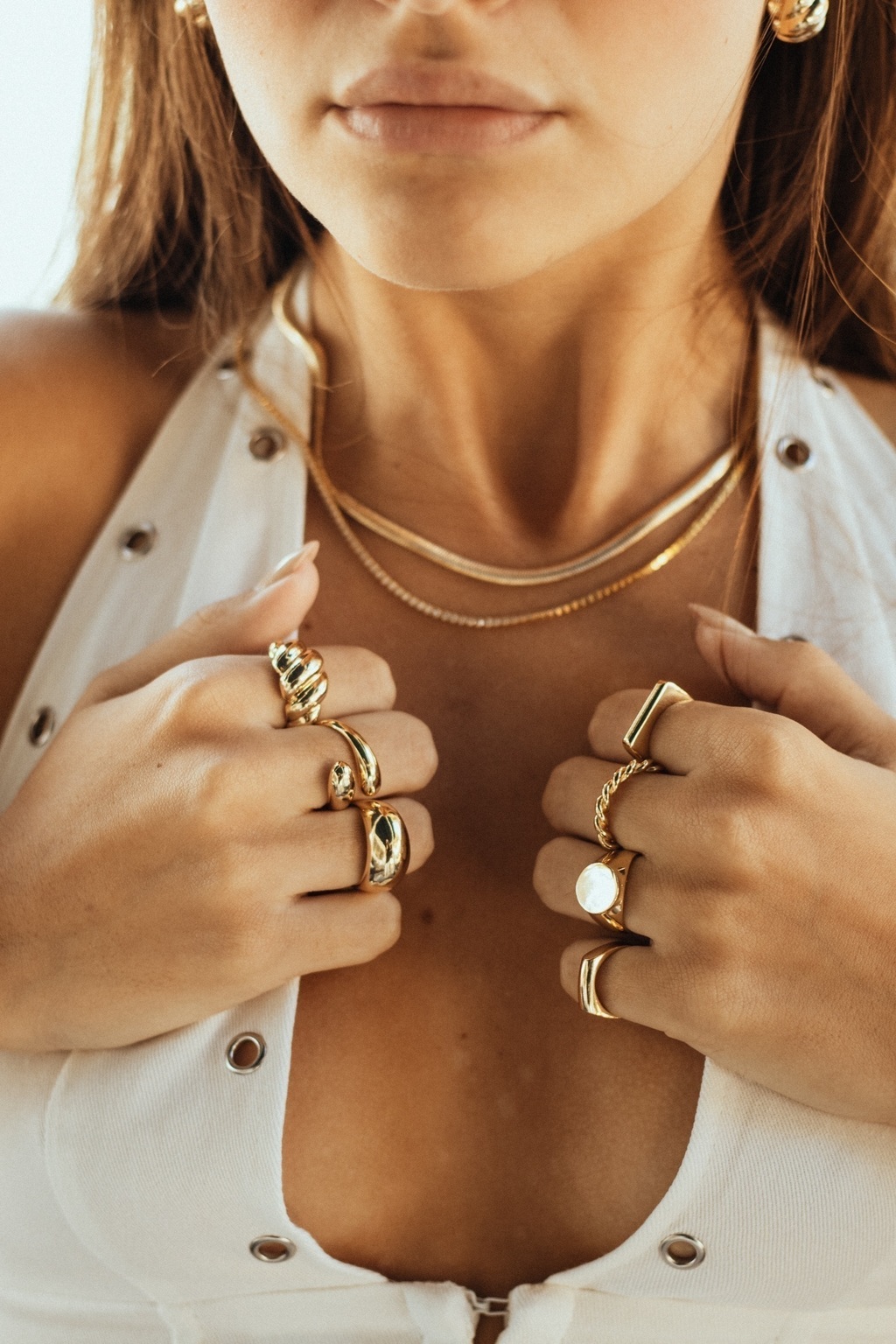 Banho de Ouro 18k: As peças da LAVIAN são banhadas em ouro 18k, o que lhes confere um brilho luxuoso e um acabamento impecável. Isso não só realça a beleza das joias, mas também adiciona um toque de exclusividade.